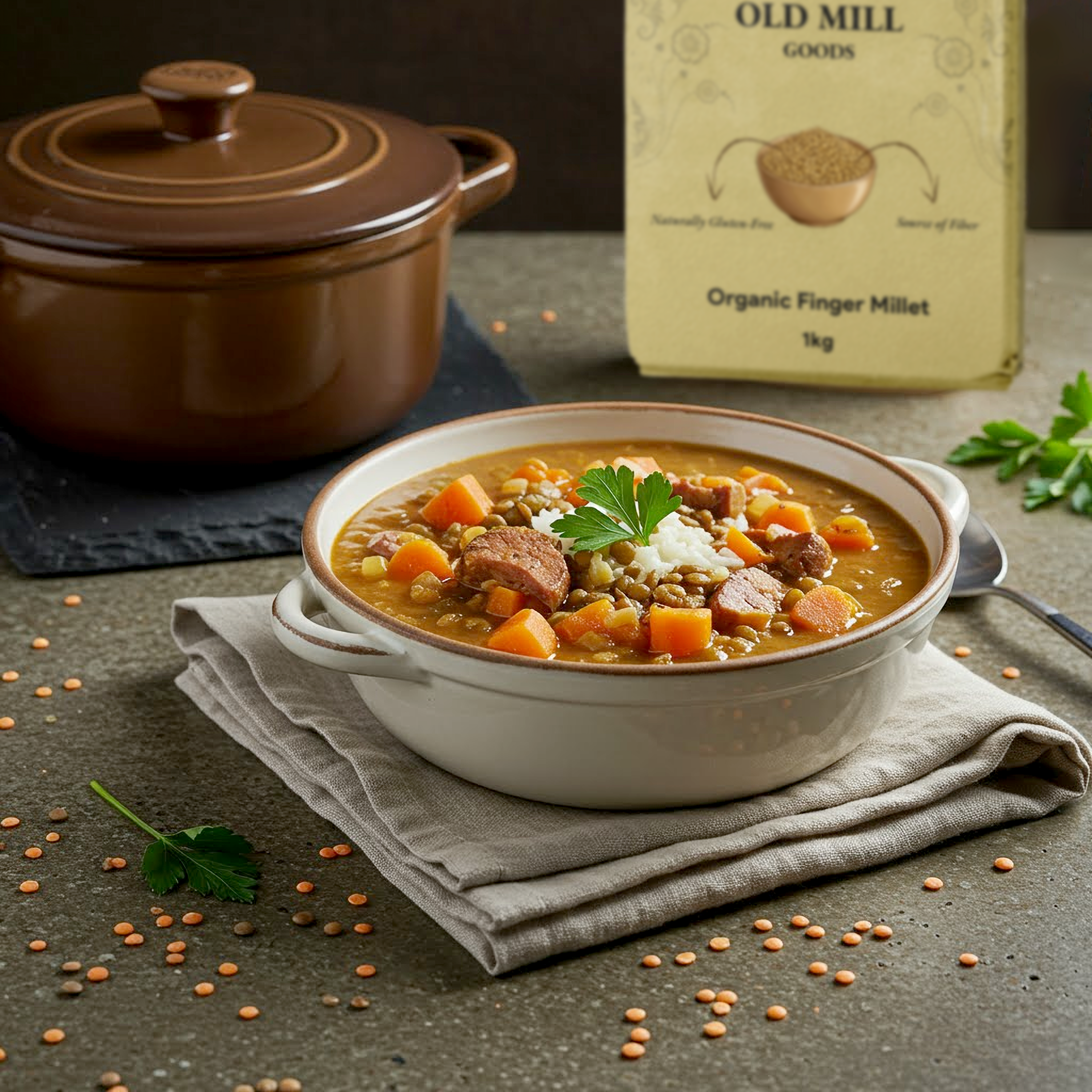 Old Mills Goods Company Organic Finger Millet is a powerhouse of nutrition, rich in calcium, fiber, and essential minerals. Naturally grown without chemicals, it retains its purity and health benefits. This gluten-free grain supports bone health, digestion, and overall well-being. Its low glycemic index makes it an excellent choice for diabetics and weight management. Perfect for making rotis, porridge, dosa, or baked goods, it adds a wholesome touch to your meals. With its earthy flavor and high nutritional value, it’s a great addition to a balanced diet. Enjoy the goodness of organic finger millet for a healthier and stronger lifestyle.